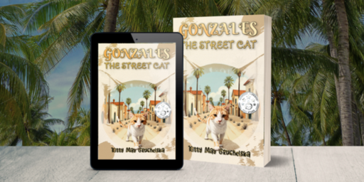 Gonzales, The Street Cat by Kitty Mae Gruchelska, is the first book in a planned series for middle-grade readers, featuring the adventures of a feisty young male feline found living on the streets in Yasmin, named Gonzales by his humans. Gonzales and his fellow street cats spend their days napping in hidden nooks and crannies and their nights searching for enough scraps of food to stay alive. However, when a new couple moves onto their street and leaves food and water dishes outside their front door for the strays, Gonzales begins to consider adopting them as his own family to ensure food and shelter security. The decision is not an easy one for the young cat; he has been disappointed by humans before, and he must consider trading the life he knows for the unknown.
